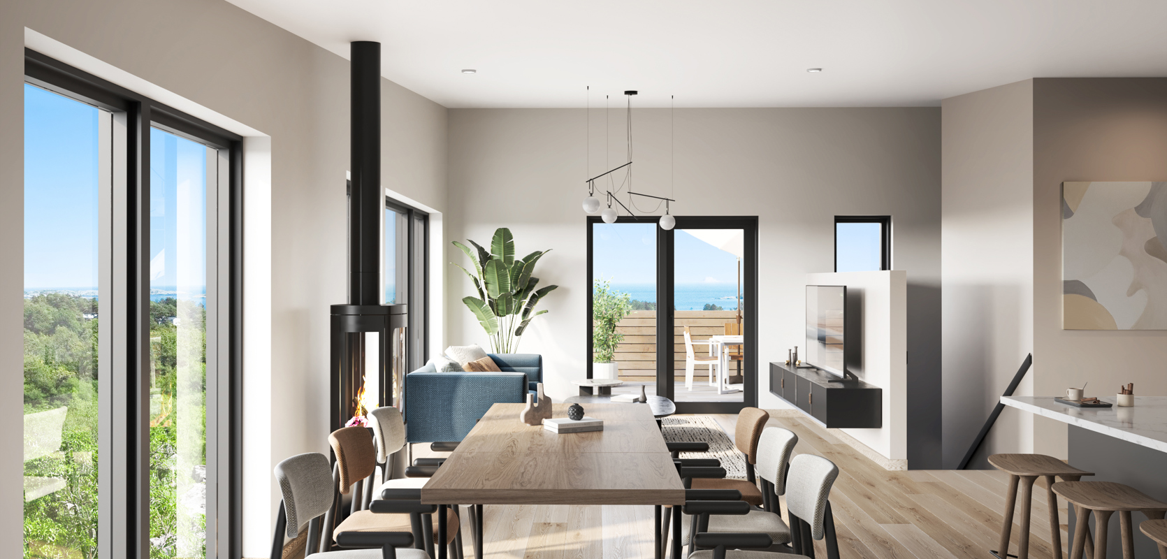 Skansen er et moderne hus med store vindusflater, pulttak og elegant stående trekledning. Samtidig som huset er svært stilig, har det alt en familie trenger.
