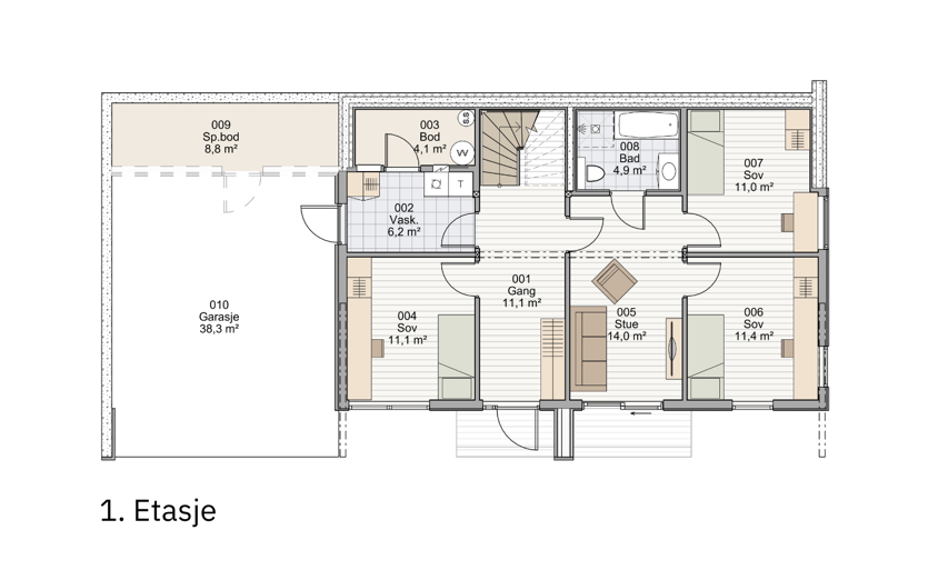 - 4 soverom, 2 stuer, 2 bad, vaskerom, teknisk rom