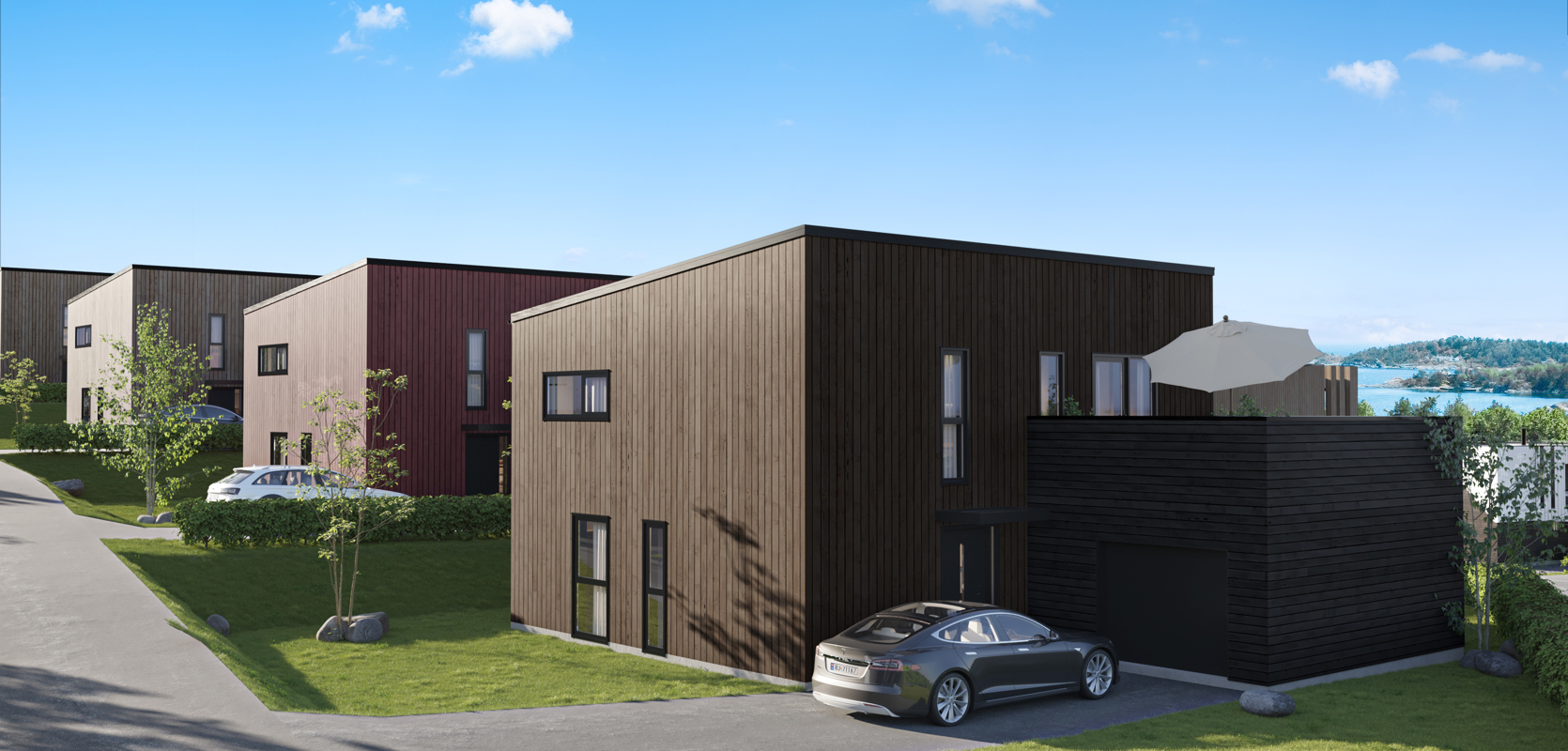 Skansen er et moderne hus med store vindusflater, pulttak og elegant stående trekledning. Samtidig som huset er svært stilig, har det alt en familie trenger.