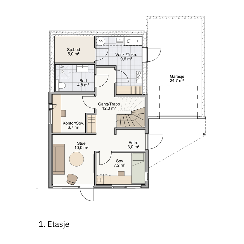 Støle 130 kan bygges på flere tomter på Støle Terrasse. Avhengig av tomt kan størrelse på garasje begrense seg.
