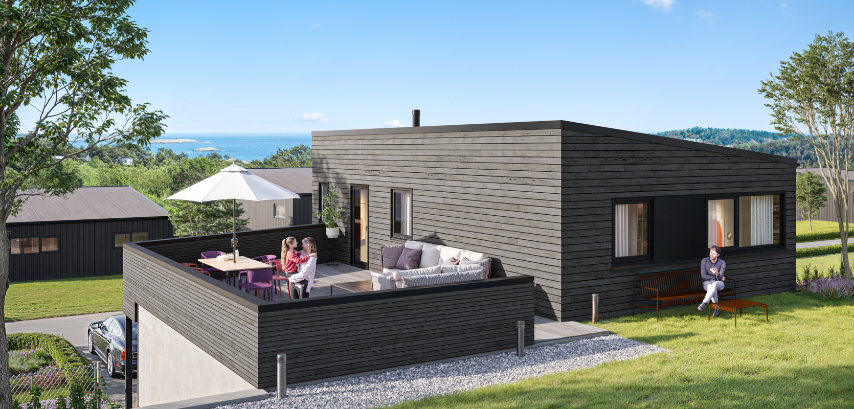 Opsjon: Boligen kan også leveres med dobbelgarasje som illustrert, pris fra kr. 4 320 000 + omkostninger.